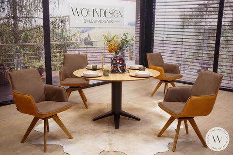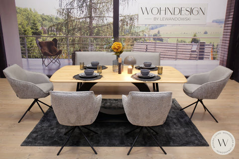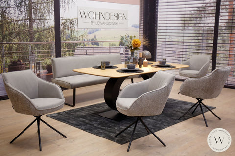 Diningsystem Bank + 4 Stühle in einer Stoffkombination