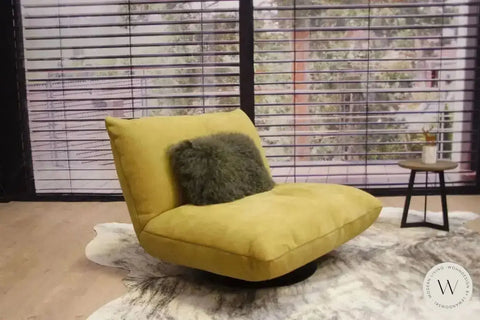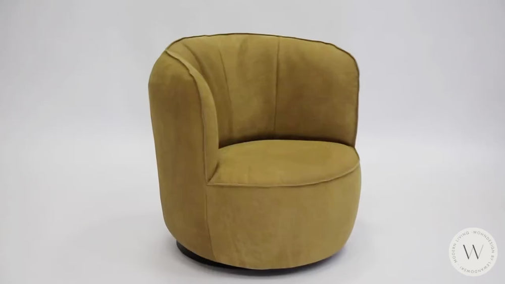 Dreh- & Schaukelsessel Donna inkl. Hocker in Leder Rhino curry