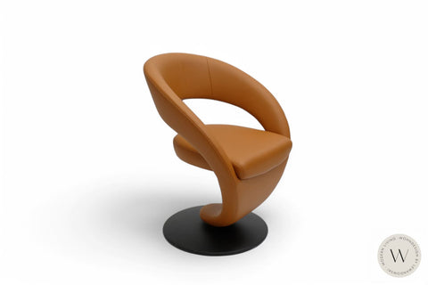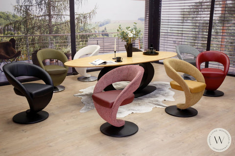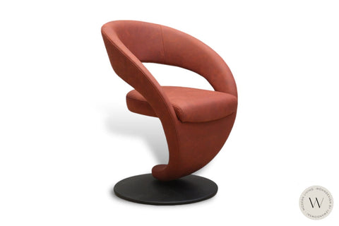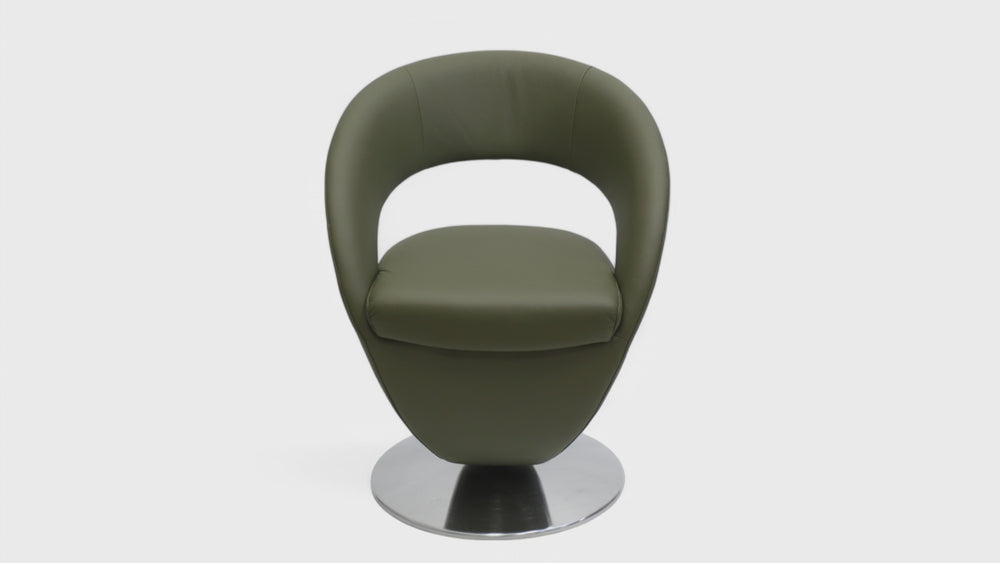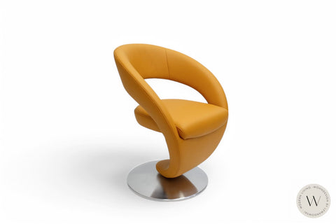 Der abgebildete Esszimmerstuhl 6080 von K+W Silaxx ist in einer feinen Leder Bronco 21 (Farbe s. Abb.) überzogen und mit einem Drehteller in Edelstahl versehen.