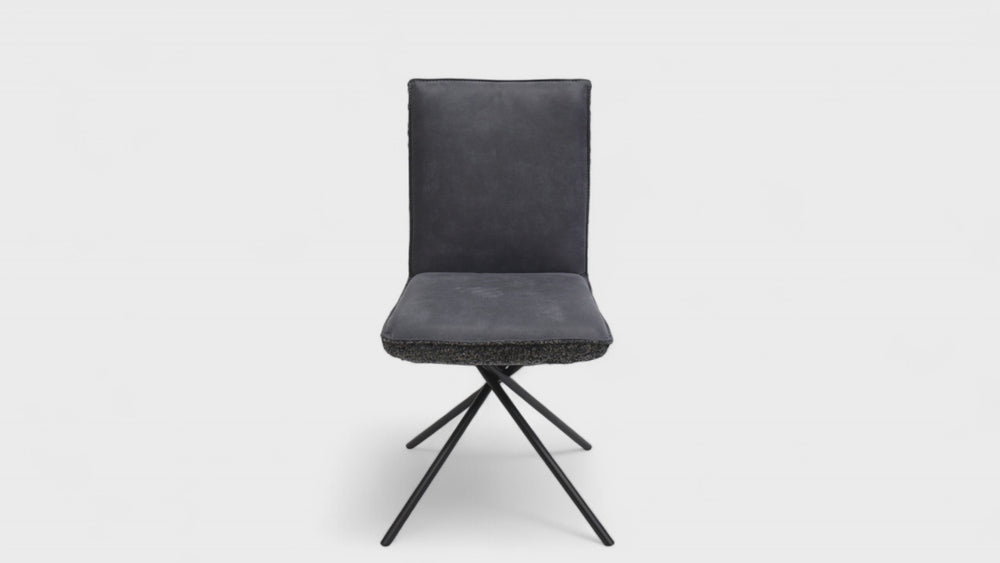 Der abgebildete Esszimmerstuhl Modell 1250 S1MX des Diningsystems von KOINOR ist in einer Kombination aus Mikrofaser Bison 13-69 (Bezugsteil 1 / Sitz) & dem Stoff Venga 10-69 (Bezugsteil 2 / Rücken) überzogen und mit einem Mikadogestell in schwarz matt inkl. Rückholfunktion ausgestattet.