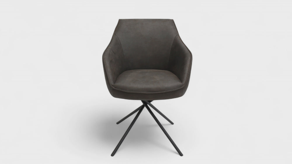 Der abgebildete Drehstuhl Modell 1250 des Diningsystems von Koinor in der Ausführung S9MX ist in einem strapazierfähigen Mikrofaser Bison 13-89 (Farbe s. Abb.) überzogen und mit einem Mikadogestell in schwarz matt ausgestattet.