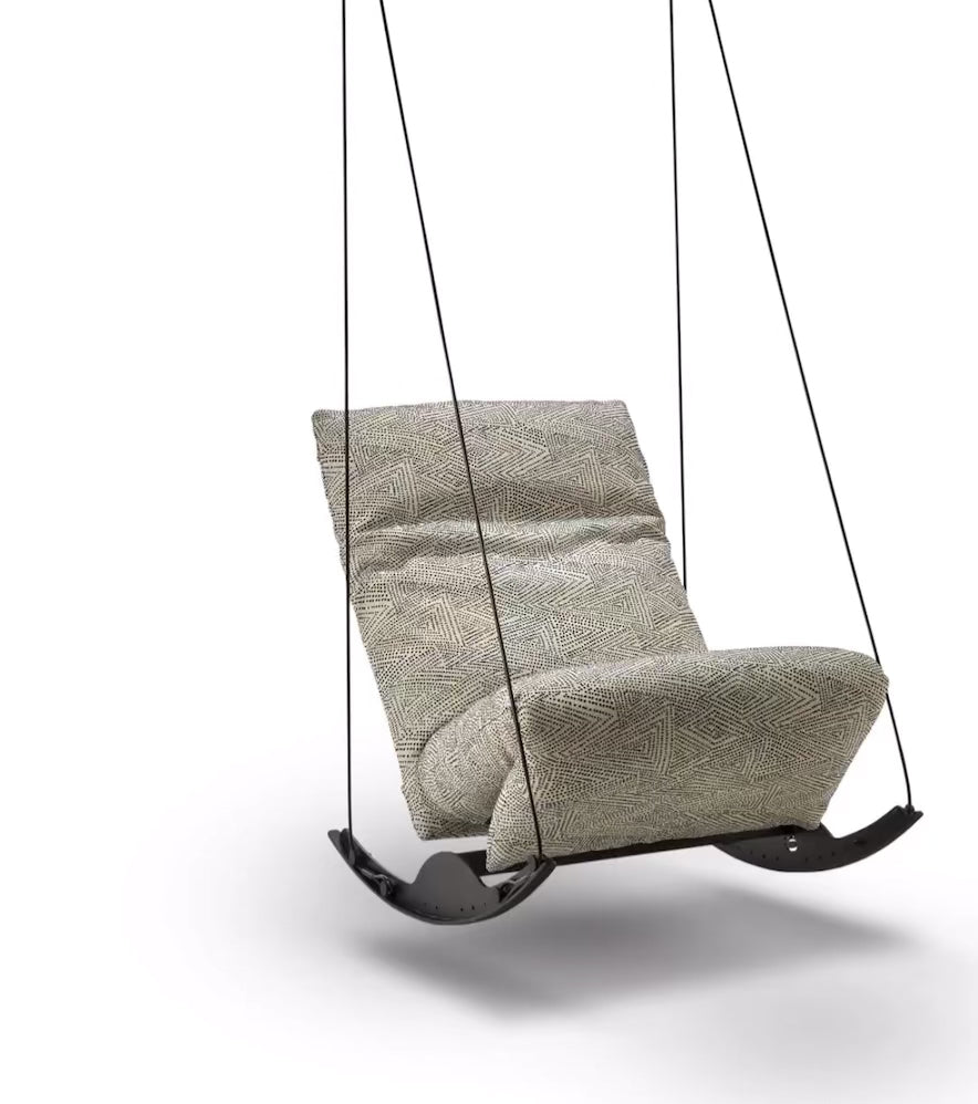 FREISCHAUKEL: Jederzeit kann an das Rockfrog Sitzelement ein Hängeseil angebracht und auf gehangen werden. Die Bewegungen werden weiter und man beginnt zu schweben. Körper und Geist kommen zur Ruhe. Ein Highlight in jedem Raum.