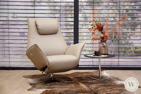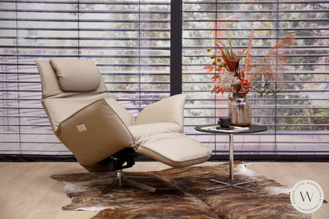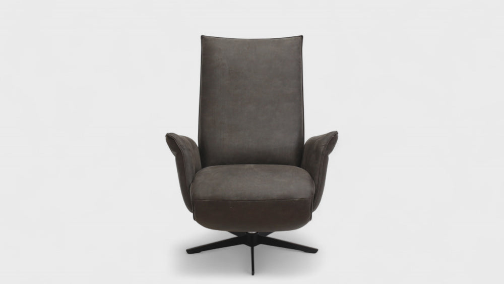 Der abgebildete Sessel Modell Star VM2 von KOINOR ist mit einer motorischen Relaxfunktion ausgestattet, in einer exklusiven Mikrofaser Bison 13-89 (Farbe s. Abb.) überzogen und mit einem Sternfuß N°4 in schwarz matt versehen.